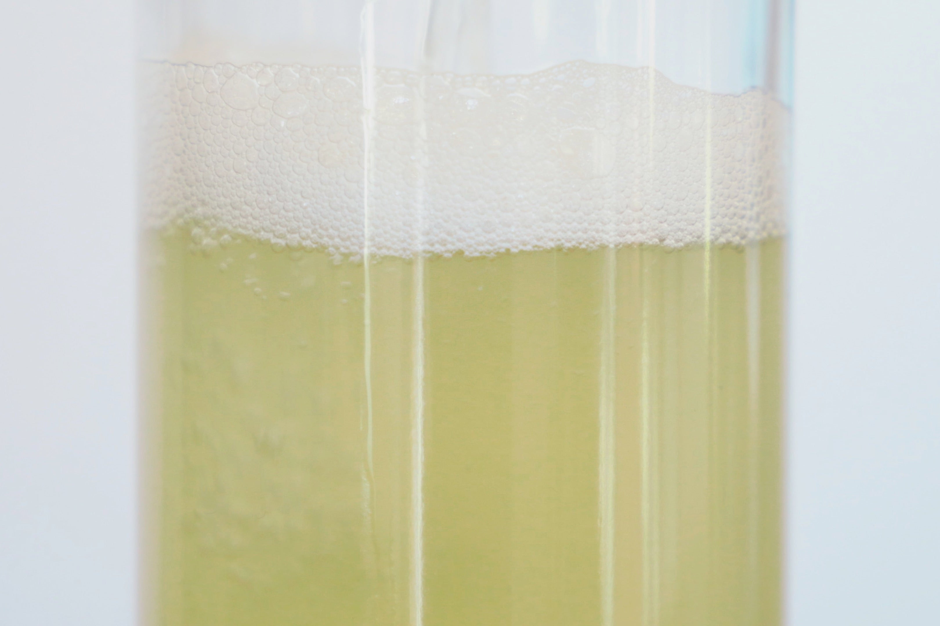 丁寧に発酵されたプレーンのSCOBY TEAを次は、自家製シロップと共に瓶に詰め、更に発酵させます。これにより炭酸を入れる事なく発泡してきます。また、瓶内で発酵させる事によりまろやかになり、更に美味しくなります。フレーバーによって発酵時間なども変わるのでブリュワーの経験と細かいチェックが欠かせません。