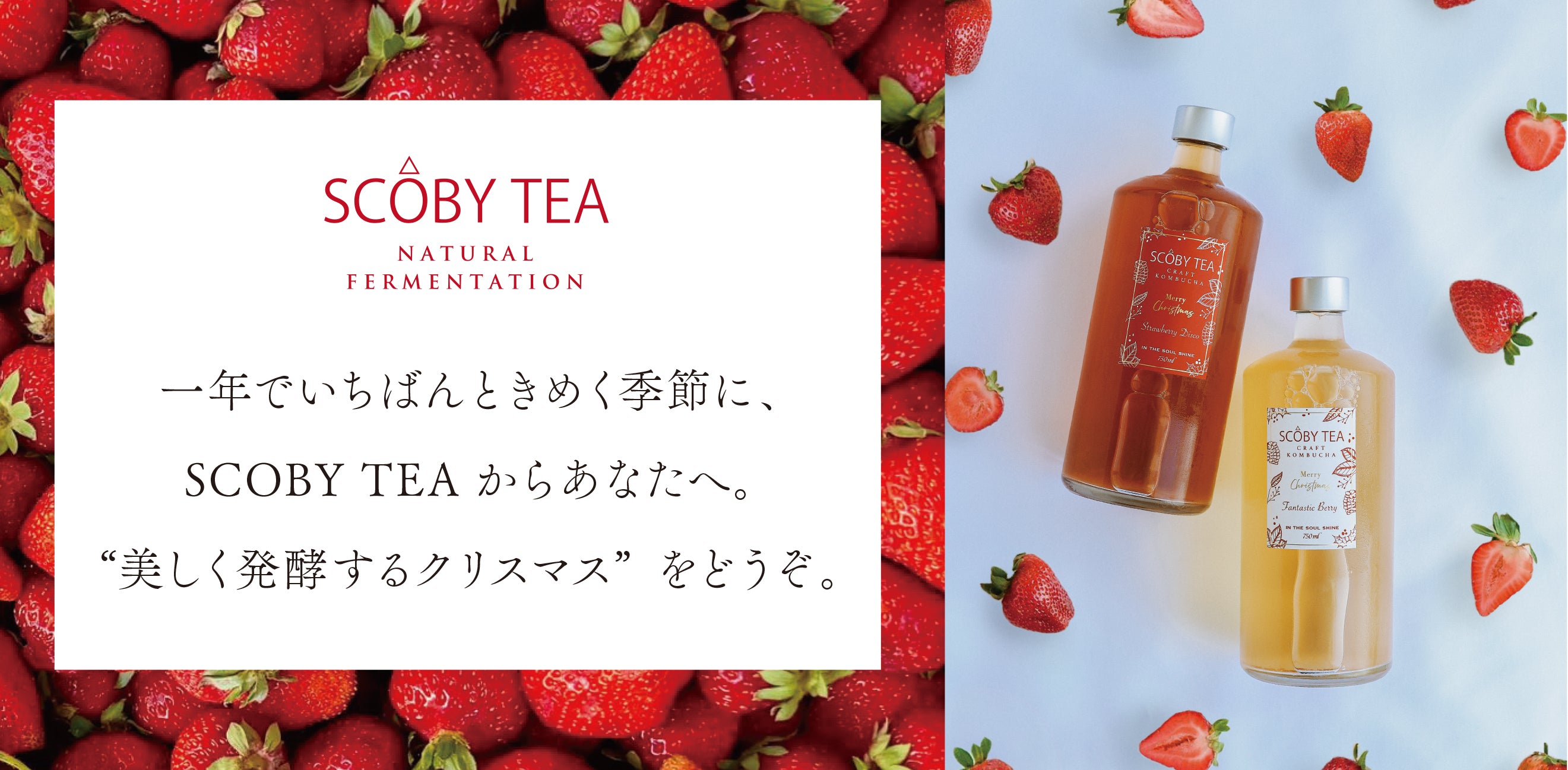自然栽培のストロベリーを贅沢に発酵させ、添加物を一切使用せず仕上げた生スコビーティーは、華やかな酸味と心まで潤うようなやさしい甘みが特徴です。