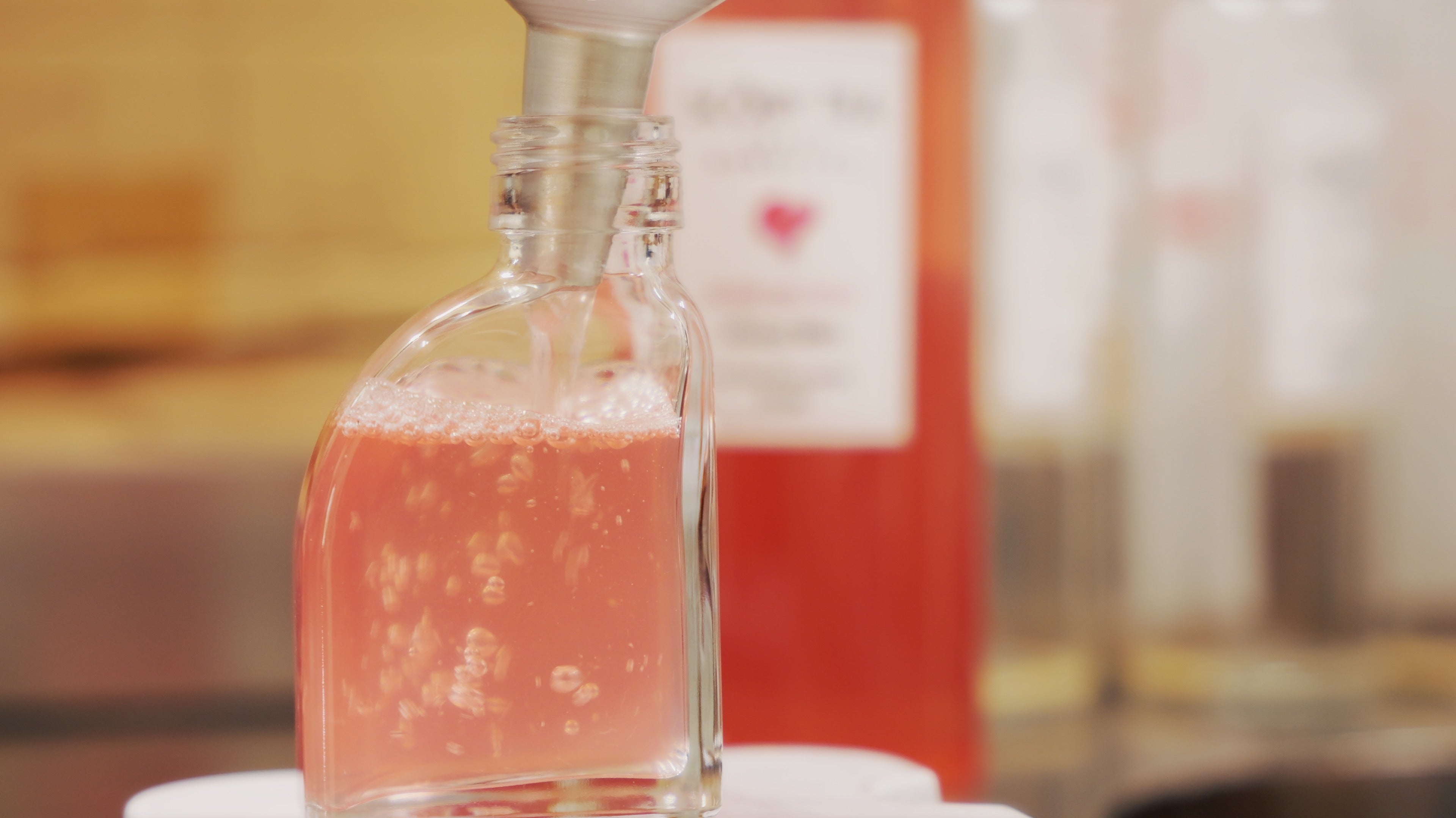 丁寧に発酵されたプレーンのSCOBY TEAを次は、自家製シロップと共に瓶に詰め、更に発酵させます。これにより炭酸を入れる事なく発泡してきます。また、瓶内で発酵させる事によりまろやかになり、更に美味しくなります。フレーバーによって発酵時間なども変わるのでブリュワーの経験と細かいチェックが欠かせません。